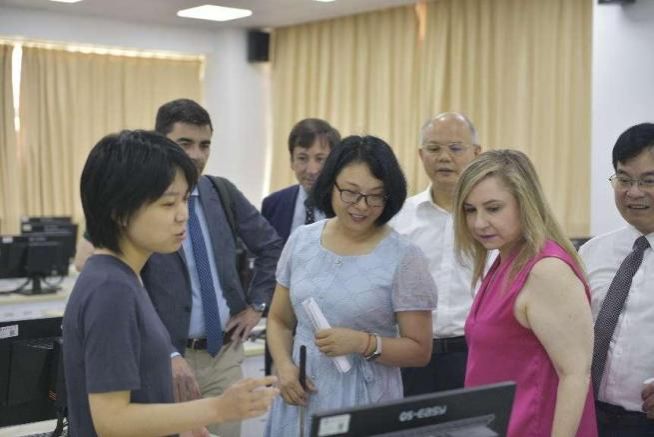 系统科学部主任涂俐兰教授带领马德里康普顿斯大学一行参观了MG冰球突破网站院史馆,介绍了MG冰球突破网站的发展史。马德里康普顿斯大学代表在院史馆留言板上写下了“两校友谊长存、多加合作交流”的寄语。随后,涂俐兰教授带领代表团参观了冶金工业过程系统科学湖北省重点实验室展示室,向其讲述了我校系统科学学科取得的成绩和未来的发展方向。